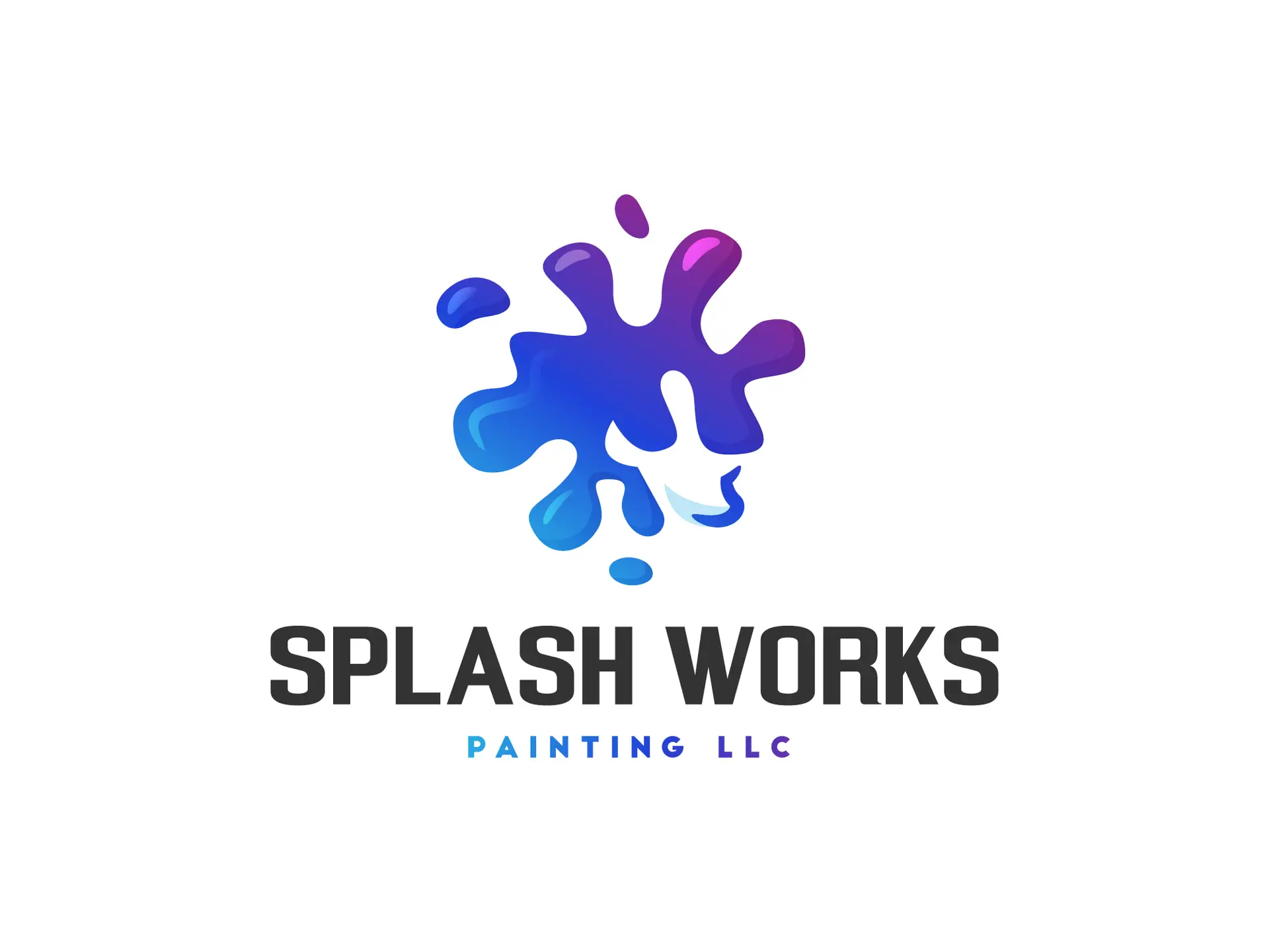 A logo project for a painting services company that emphasizes a dynamic and creative feel. The splash shape is used as a direct representation of the paint medium, combined with modern color gradations to create a fresh and professional identity.
